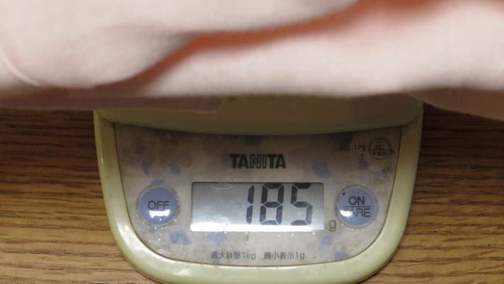 重量もLサイズで約190g程と本当に軽いです。着用した際の感覚としては、重さは感じず肌にあたる柔らかさのみ感じます。