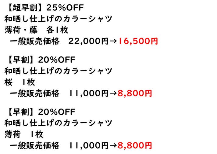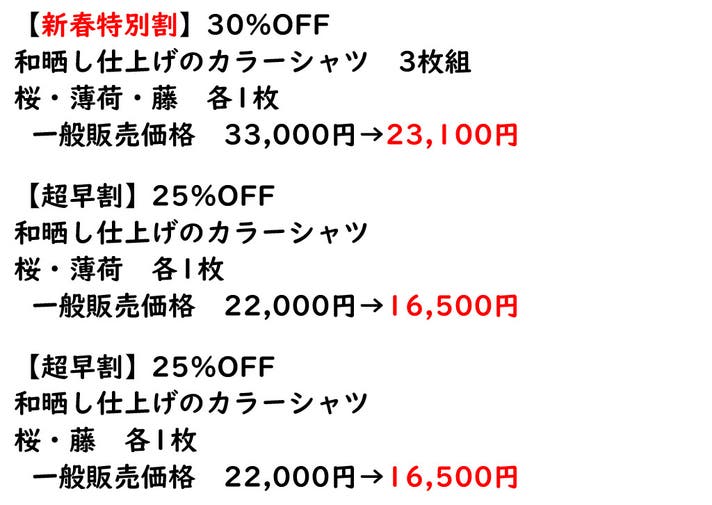 今回は春に向けての新カラーを3色ご準備致しました。シャツが活躍する4月のお届けを目指してのプロジェクトとなります。新春特別割もご準備致しました。是非春カラーも応援頂けましたら幸いです。また初めてプロジェクトを見て頂きました皆様、是非この機会に「和晒し」の技法を知って頂けたら嬉しいです。