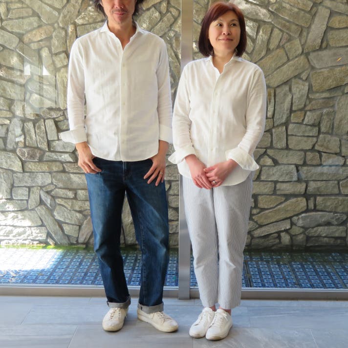 メンズ仕立てのシャツではありますが、女性からの評価も高いシャツです。女性が着用した際の写真(以前のホワイトシャツプロジェクト)も掲載いたします。3枚組、2枚組はカラーでサイズは選べますので、ご家族、ご友人とシェア頂けたら嬉しいです。
