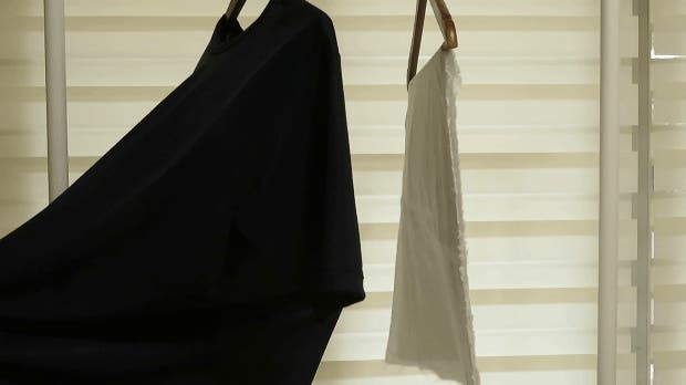 ドライヤーでTシャツの中から風を送ると、白の生地に見事に風が通ってます。