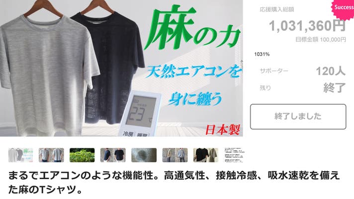「Makuake(マクアケ)」は、実行者の想いを応援購入によって実現するアタラシイものやサービスのプラットフォームです。このページは、 ファッションカテゴリの 「まるで天然のエアコン!?高通気性、接触冷感、吸水速乾を備えた麻のTシャツ。日本製」プロジェクト詳細ページです。