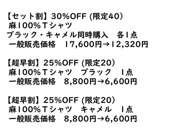 ・麻100%Tシャツ ブラック・キャメル各1枚