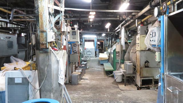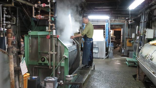 工場内は大きさの違う鉄釜が、所狭しと並んでおります。この後説明致しますが、この鉄釜を使用した染色方法に驚きと感動を覚え、夢中で4時間も写真と動画を撮らせて頂いたのを思い出します。