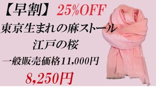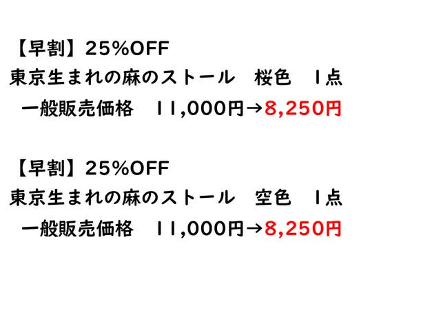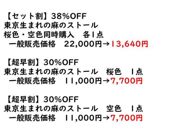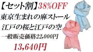 【セット割】東京生まれの麻ストール 桜色1枚 空色1枚