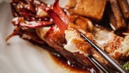 そこに、若林は北海道、余市の洋梨のグリルを添え、さらにきのこのソースをかけて提供します。
