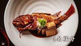 当店のスペシャリテである「キンキの煮付け」は、日本料理のご馳走感を味わっていただくため、尾頭付きで丸々一匹贅沢に使用。