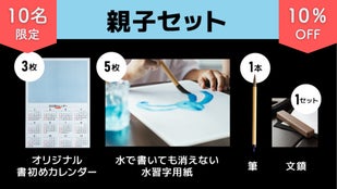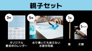 今回はオリジナルカレンダーだけでなく、水で書いても消えない水習字用紙や筆、文鎮などもセットになっているでこの機会に体験してみてください!