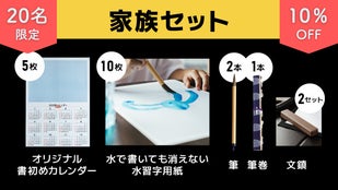 今回の水習字用紙を用いて、書道・習字をおうちで気軽に楽しめるための「書道セット」の販売も現在準備しております。