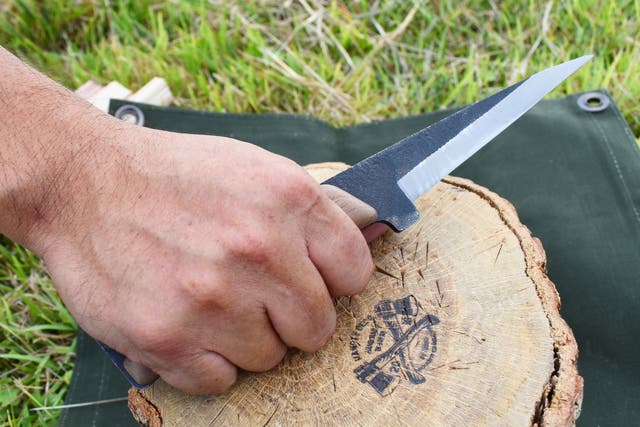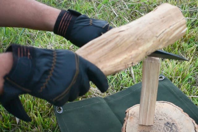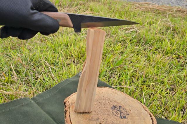 「切り出し両刃ナイフ」は切り出しナイフなのにガシガシ叩けるこのタフさ!普通の切り出しナイフにはない豪快な使い方。