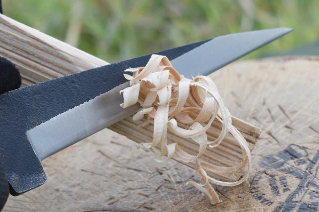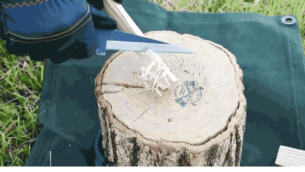 キャンプナイフでフェザースティックを作るとき、キャンプナイフよりも薄く細かなより火の粉が絡まりやすいフェザースティックが作れます。