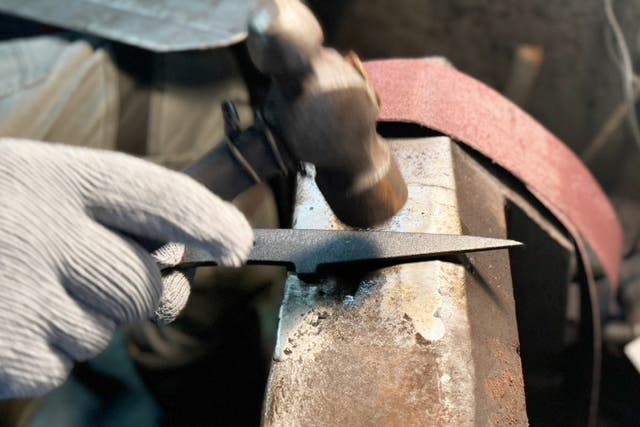 熱処理をすることで歪が生じてしまいます。それを1丁1丁ハンマーで直していきます。