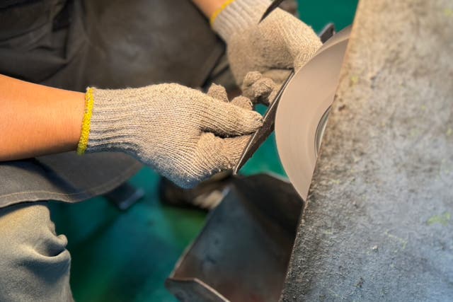 刃付け、磨きの作業。刃付けは微妙な調整が必要となるので、熟練の経験や勘が必要となる非常に重要な作業です。