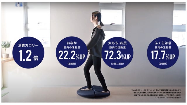 ウェルネスウォーキングクッションを使ってウォーキングをした場合、使わずにウォーキングをした場合の1.2倍のカロリー消費。