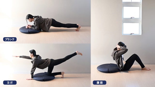 密度が高い低反発のやわらかいクッションだから、ウォーキングの他にも様々なトレーニングの使い方ができます。プランク、腹筋、ヨガにも、クッションの厚みで腰や肘や膝を優しくガードしてくれます。