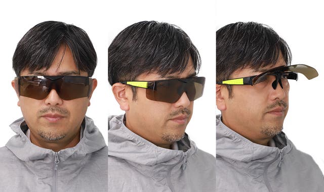 - 跳ね上げ式レンズで日中はサングラスで紫外線対策、朝夕は跳ね上げで視界良好!