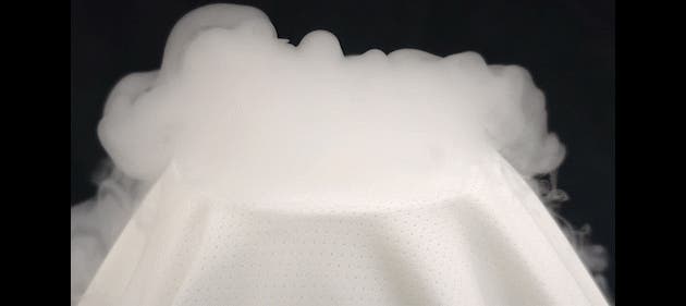 通常の生地とコアパンツ生地のエアロクール生地と水分吸収性をテストしました。