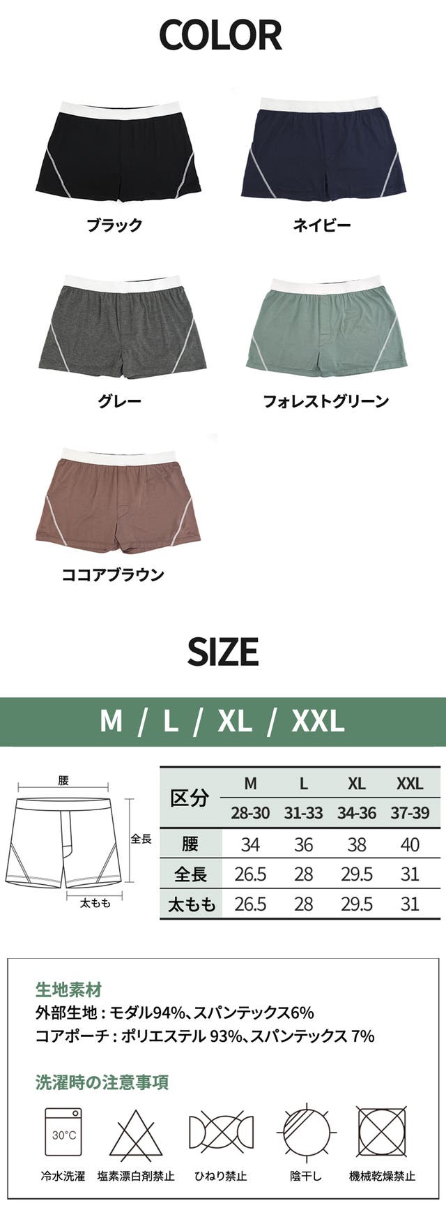 トランクスになかった「コアポーチ」が男性の中心部分を固定しで、揺れなく快適に着られます。