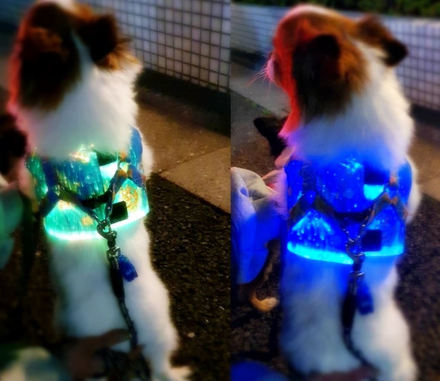 - 夜の散歩時、ワンちゃんが光輝くイルミネーションとなり、飼い主様同士の交流に繋がります!