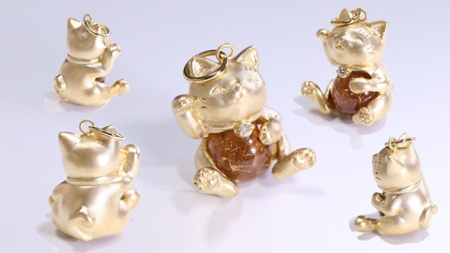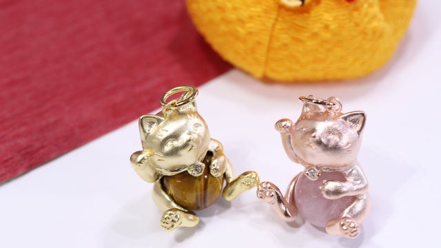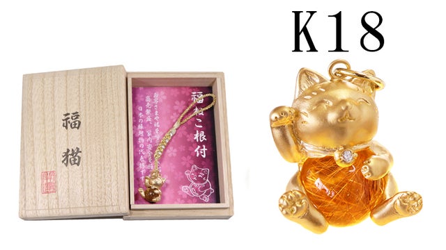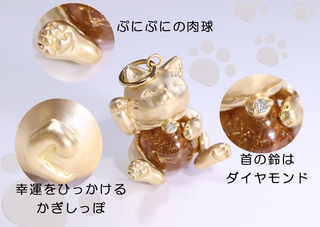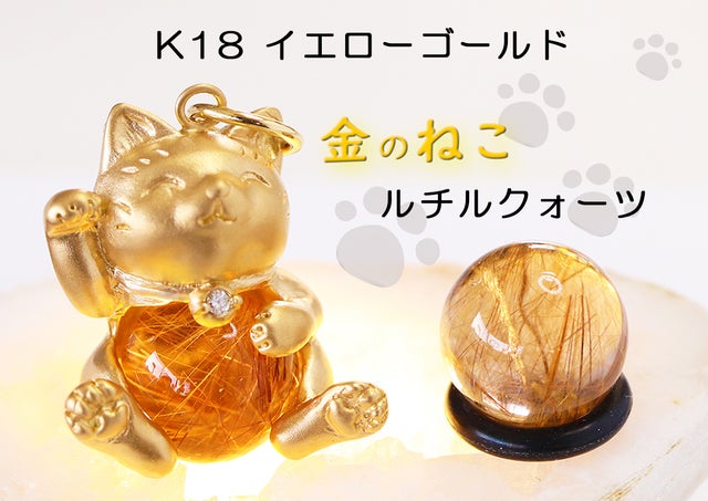 【Makuake割】K18イエローゴールド ・ルチルクォーツ 招き猫ジュエリー