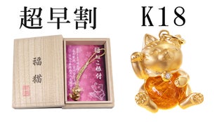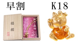 【早割】 K18イエローゴールド・ルチルクォーツ 招き猫ジュエリー
