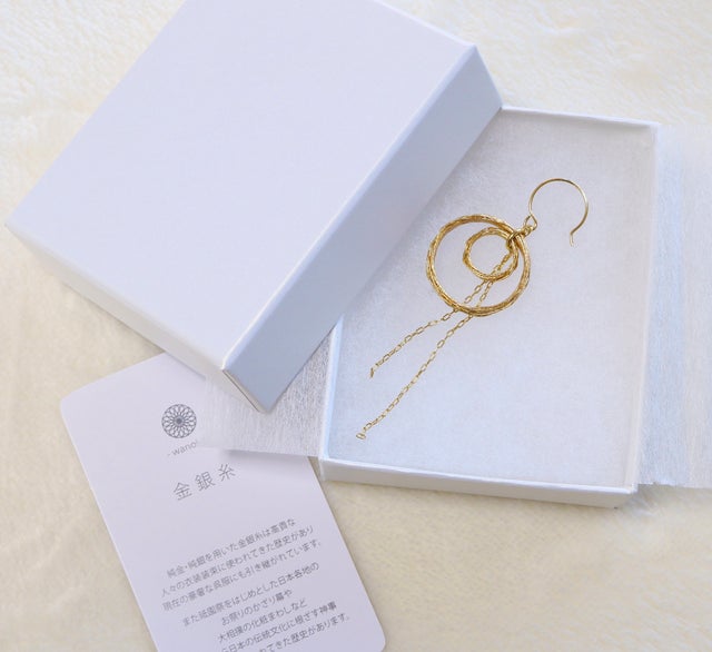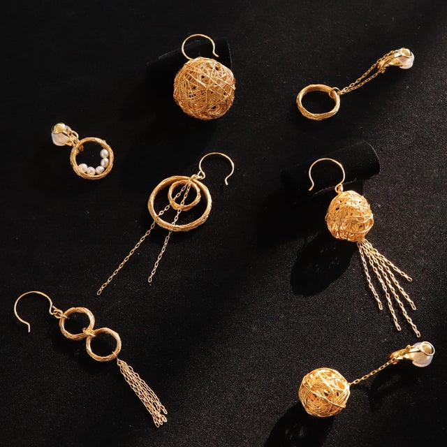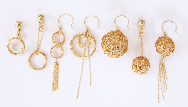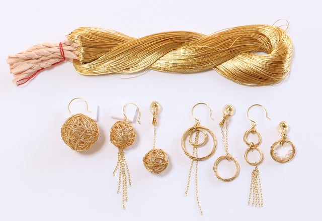 - 京都で受け継がれてきた伝統技術から生まれた本金糸で作り上げられたモダンデザインのジュエリー