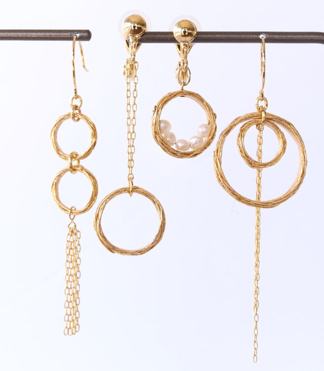 環シリーズは4つのタイプをご用意いたしました。こちらも左右で違うデザインをつけて楽しむことができます