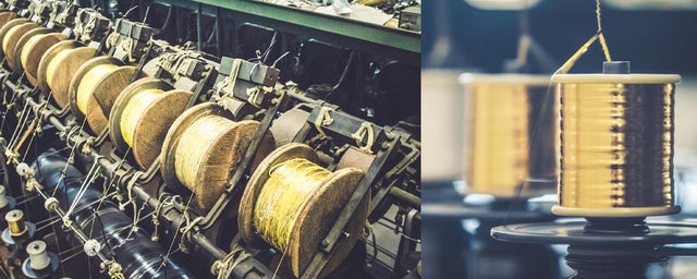 私たちが京都の伝統工芸品『本金糸』の制作工房を訪れたのは新緑がみずみずしい五月の朝まだ早い時間のこと。 金糸を作り続けて120年、明治30年創業の老舗の糸問屋の若社長が出迎えてくれました。「本金糸は、複雑な工程を熟練の職人の手によってリレーしてつくられるんですよ」と、お話してくださいました。