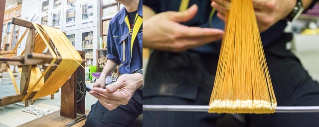 つややかな輝きと軽さが魅力の『本金糸』その秘密は日本独特の素材と製法にあります。和紙、漆、金箔、そして熟練の技。これらが全てそろってようやっと紡ぎ出される希少な糸。今回私たちは、その製造工程の奥深いところまで取材させていただくことができました。