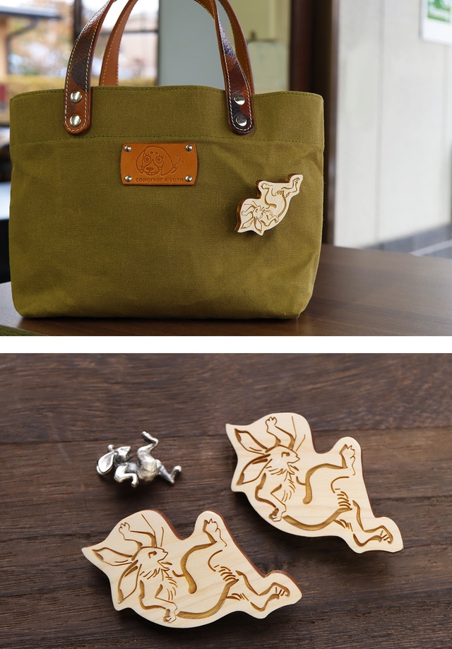 【Makuake割】鳥獣戯画5点セットとヒノキのウサギブローチ