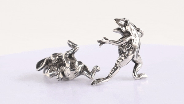 細部にまでこだわった兎と蛙の生き生きとした表情にご注目ください。