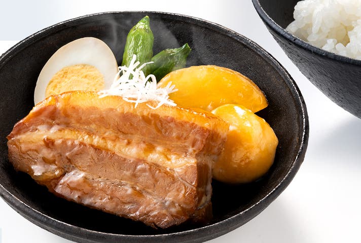 手間暇かかる下処理もしっかりと行って煮込みました。味が芯まで染み込んだ香り高い三枚肉をご堪能ください。また、たまごと根菜など具材一つ一つの大きさにこだわりました。