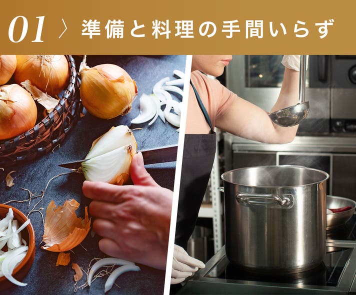 - 得した時間で自分時間を楽しんで欲しいから。本格的な美味しい料理を時短で食卓へ