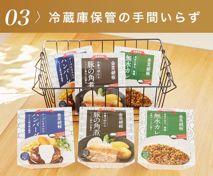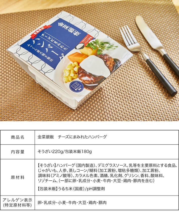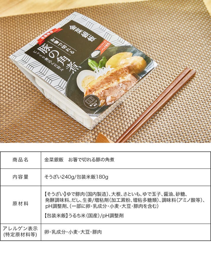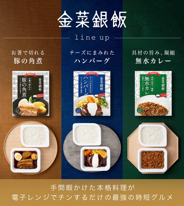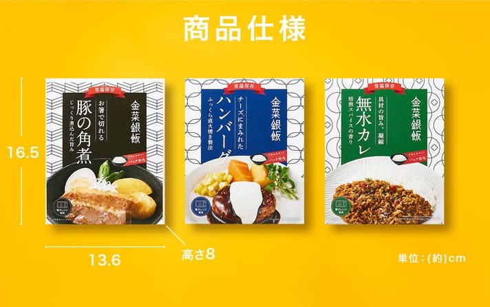 商品名:金菜銀飯(豚の角煮/ハンバーグ/無水カレー)