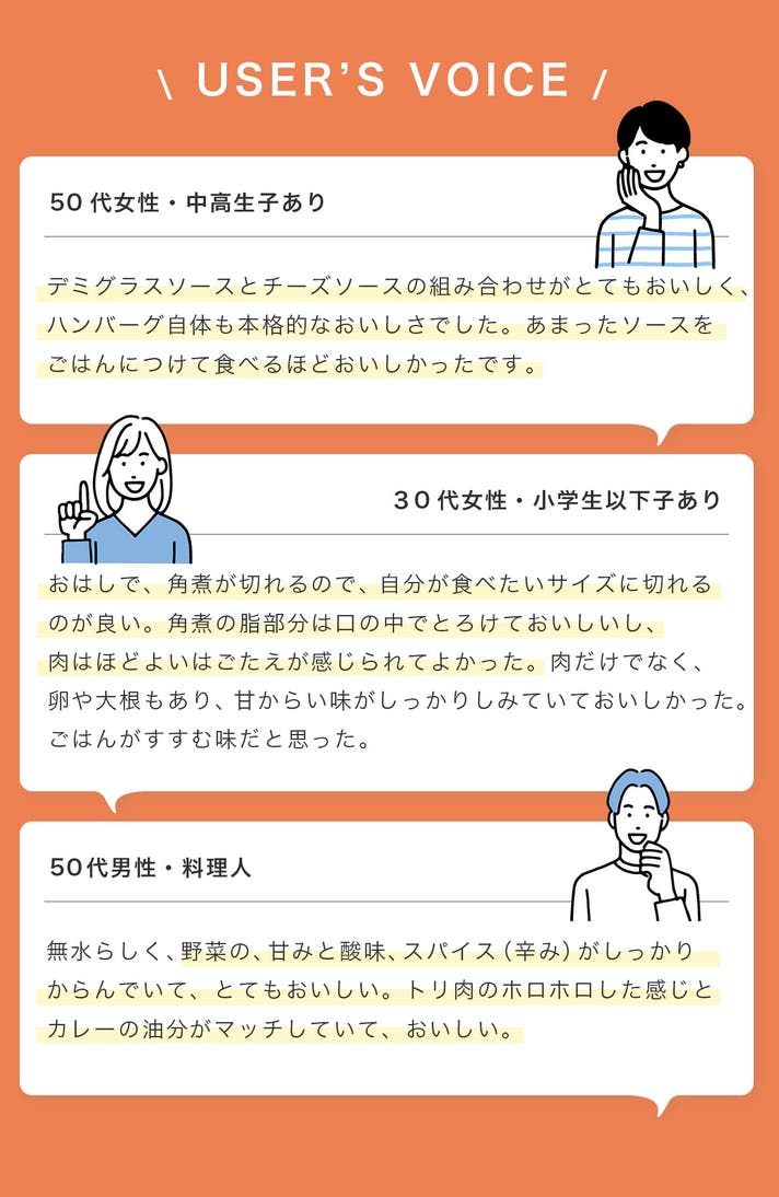 - 「料理の手間暇をかけておきました」電子レンジで加熱するだけで、本格的な味が楽しめます。