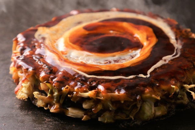 京都・錦で生まれた“わらい”特製ふわふわ「オムそば風」お好み焼。