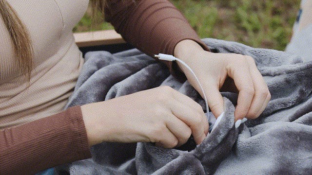 「Warm HL18」の携帯用隠しジッパー設計で、モバイルバッテリーを簡単に入れることができます。キャンプや旅行中でもお気楽にお使いいただけます。
