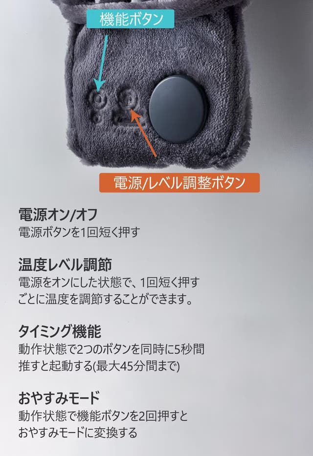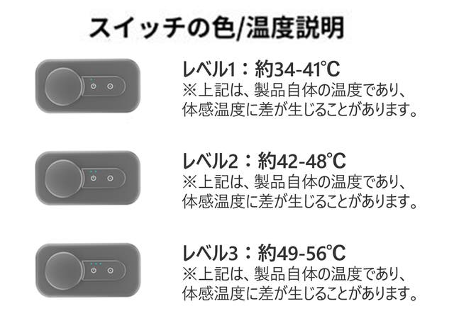 ※個人の体質原因で低温火傷になるおそれもありますので、使用前には必ず説明書内の注意事項を読んで、自分の必要に合わせて、温度調節をすることをおすすめします。