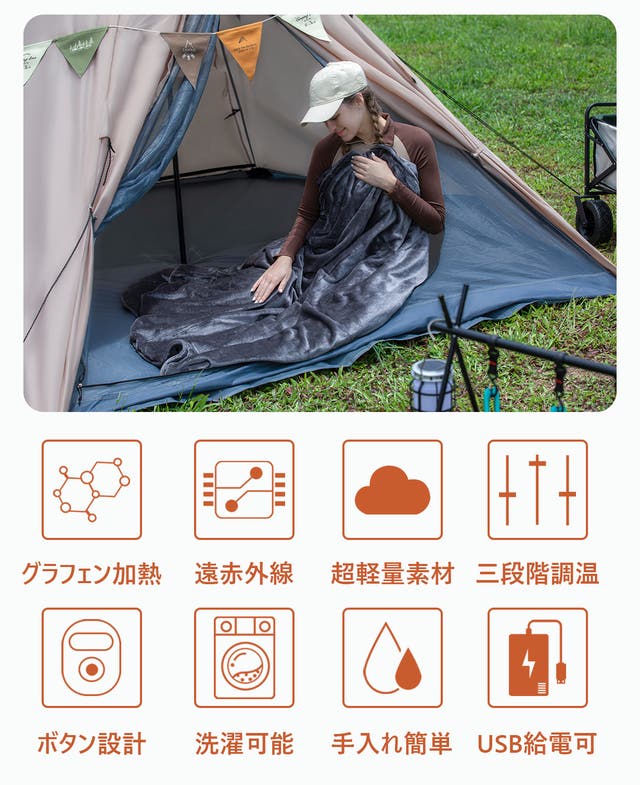 - 炭素加熱素材「グラフェン」で、これ1枚で暖かい!