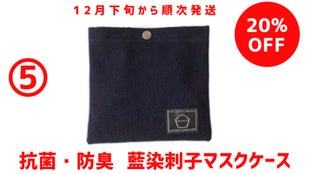 今回のマスクにぴったりサイズの、武州正藍染め刺子織り生地でマスクケースも製作いたします。