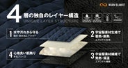 WARM BLANKETは”熱伝導”・”熱放射”を防ぐ構造に着想した、4層の独自レイヤー構造で、暖かさをキープします!!