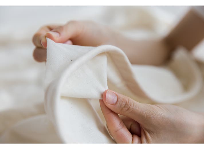 通常行われる晒しや染めの加工はしておらず、私たちは『湯洗いガーゼ』と呼んでいます。