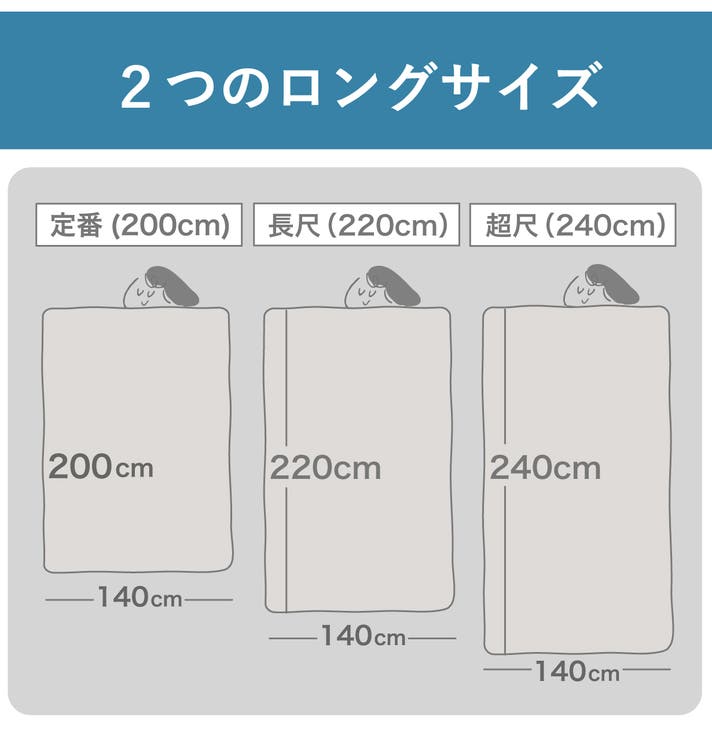 サイズ:定番 200×140cm、長尺 220×140cm、超尺 240×140cm