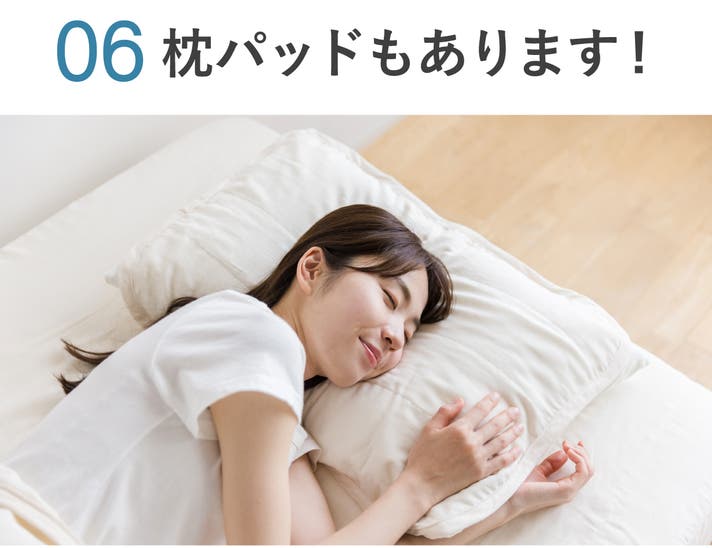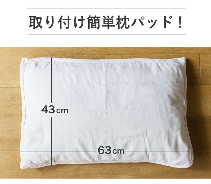 枕パッドは43×63cmの定番サイズだから、お手持ちの枕に合わせやすい。しっかりと枕を覆います。