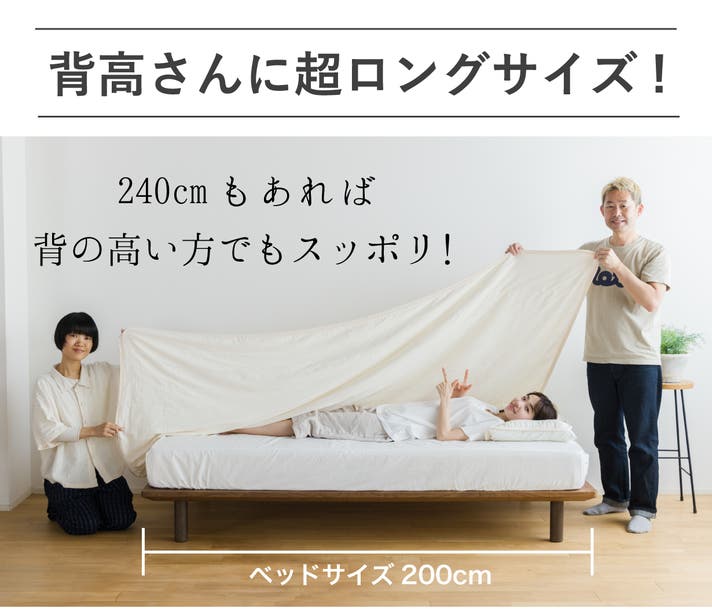 長尺220cmは敷布団を、超尺240cmはマットレスをすっぽり覆うことができます。