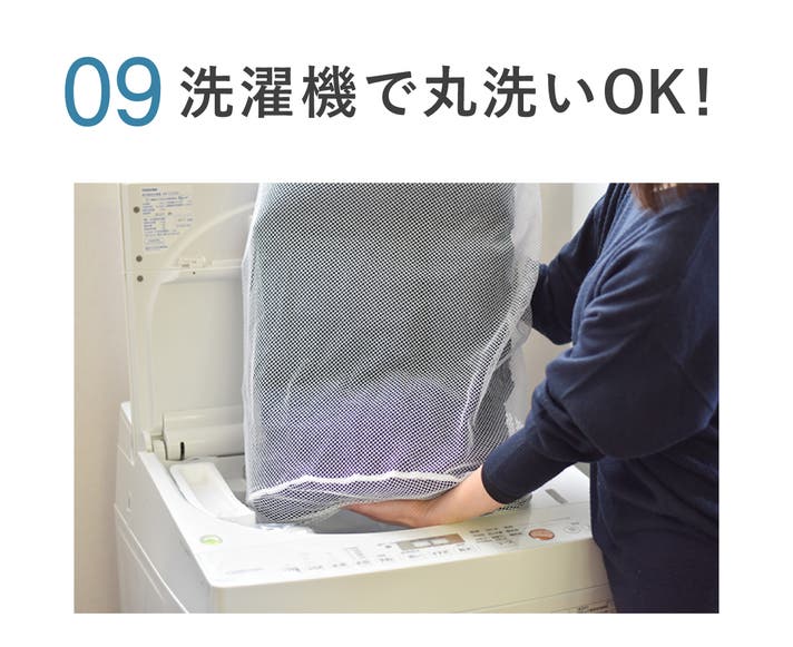 ご自宅の洗濯機で簡単に丸洗いが可能。たくさん汗をかいても、気兼ねなくお洗濯できます。