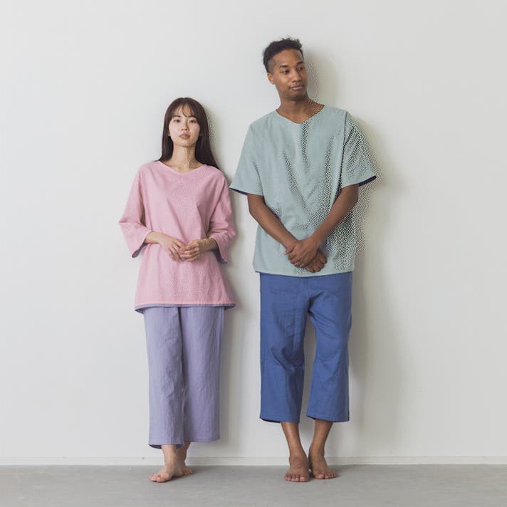 2枚のガーゼを一緒に織るのが一般的な2重ガーゼですが、このパジャマは2枚のガーゼを別々に織り、後から重ねています。