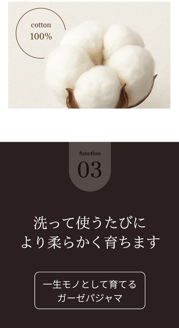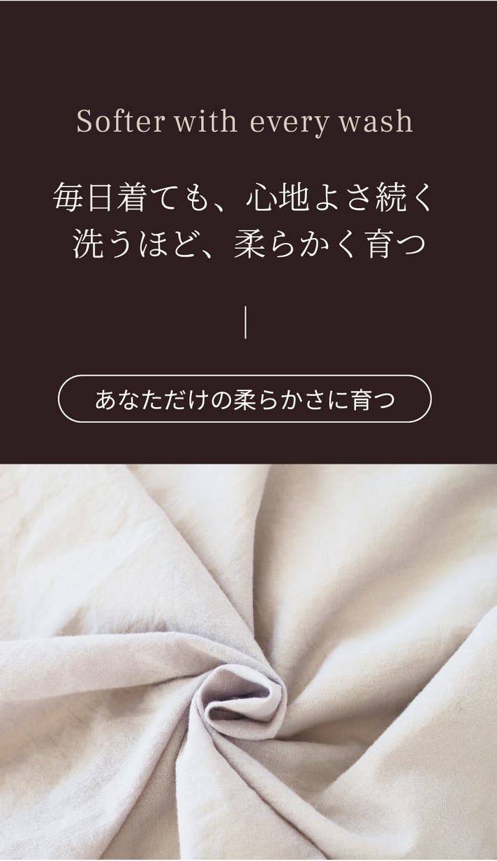 お洗濯をすることで、さらに柔らかくふんわりとします。使い込むほどガーゼならではの風合いが出て、肌に馴染んでいきます。