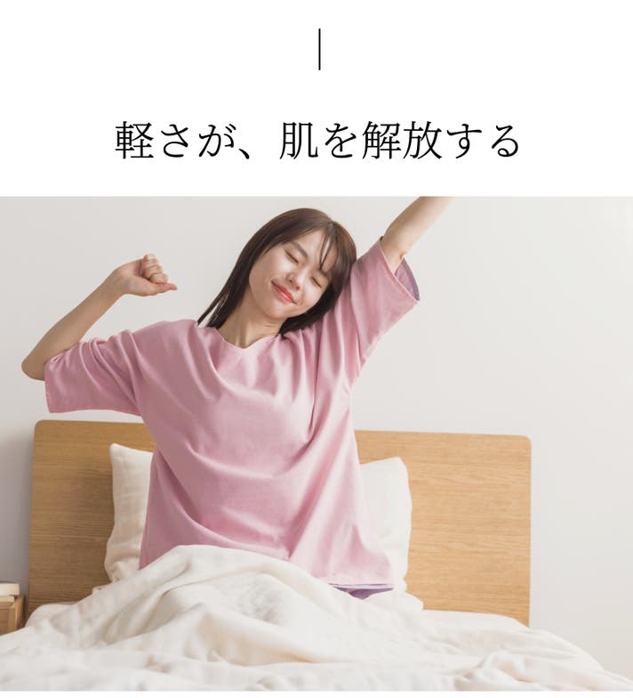 パジャマの重さや締め付け、知らないうちに肌にストレスを与えます。だからこそ、軽くて締め付けのない設計に。