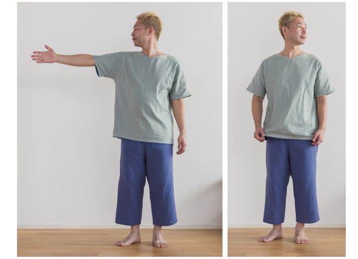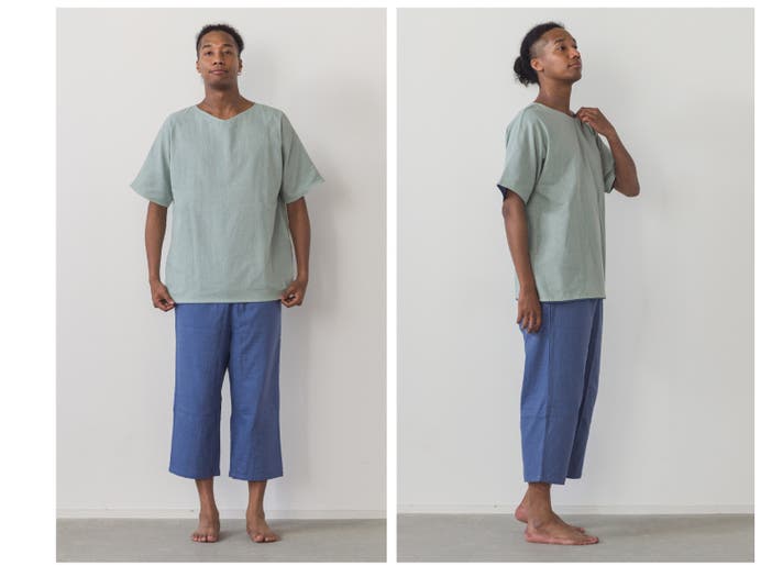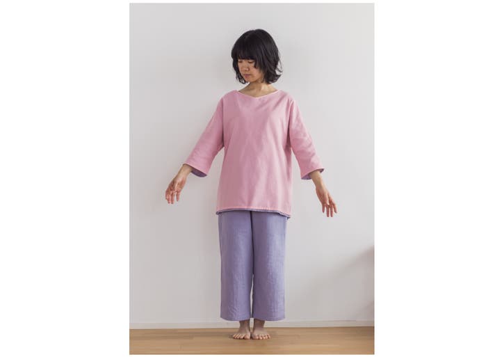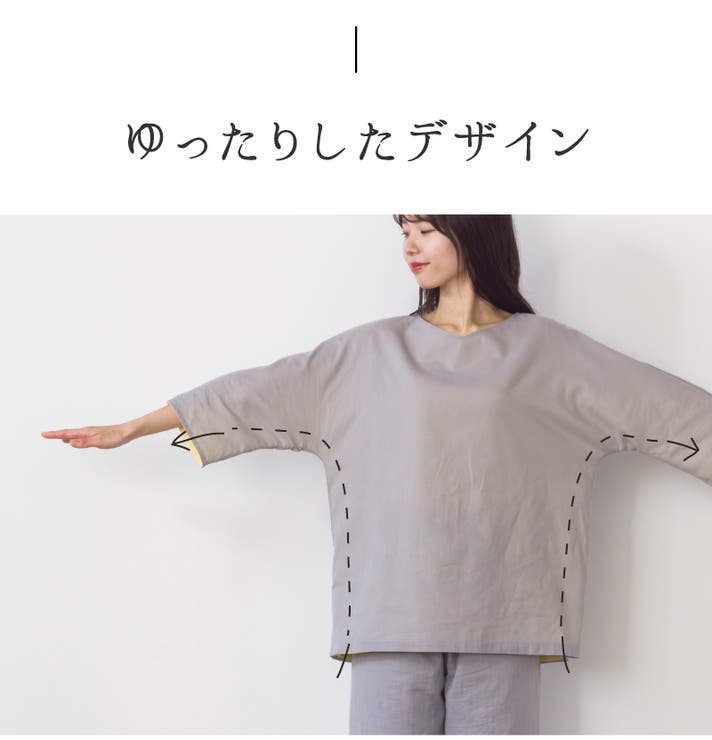 襟ぐりの広さやデザインも変更。頭はちゃんと通って、でも襟ぐりが開きすぎない、どんな体型の方にも着ていただきやすいサイズになりました。
