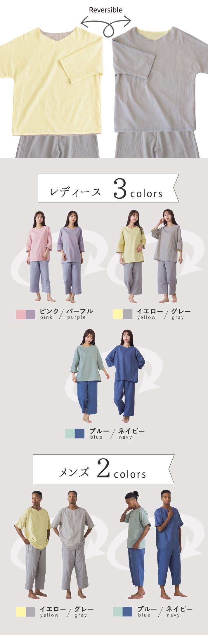トップスを裏返すとカラーが変わる「リバーシブル」仕様。その日の気分でお好きなカラーを選べます。